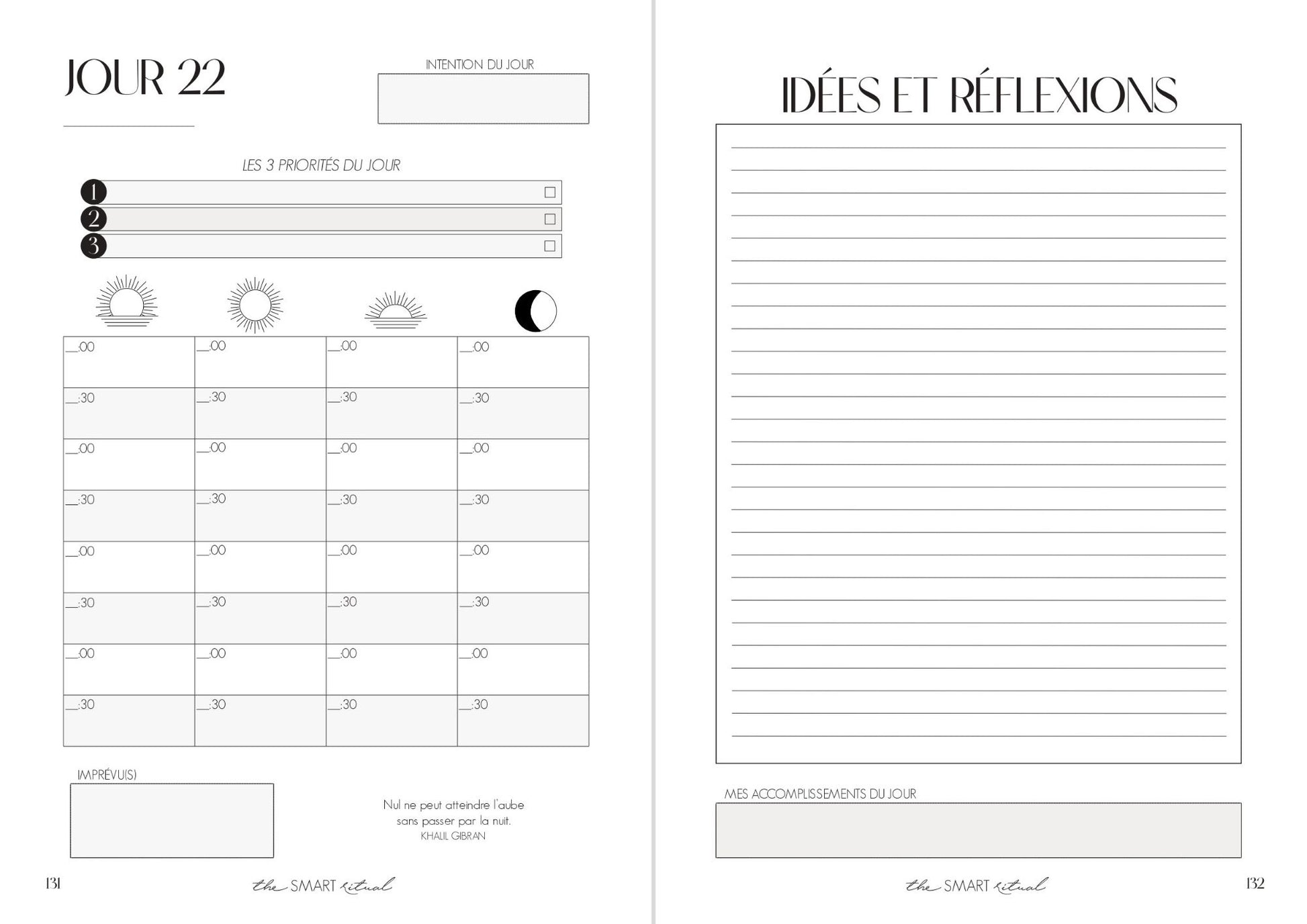 Avec ses pages dédiées à la réflexion, à la planification et au suivi,