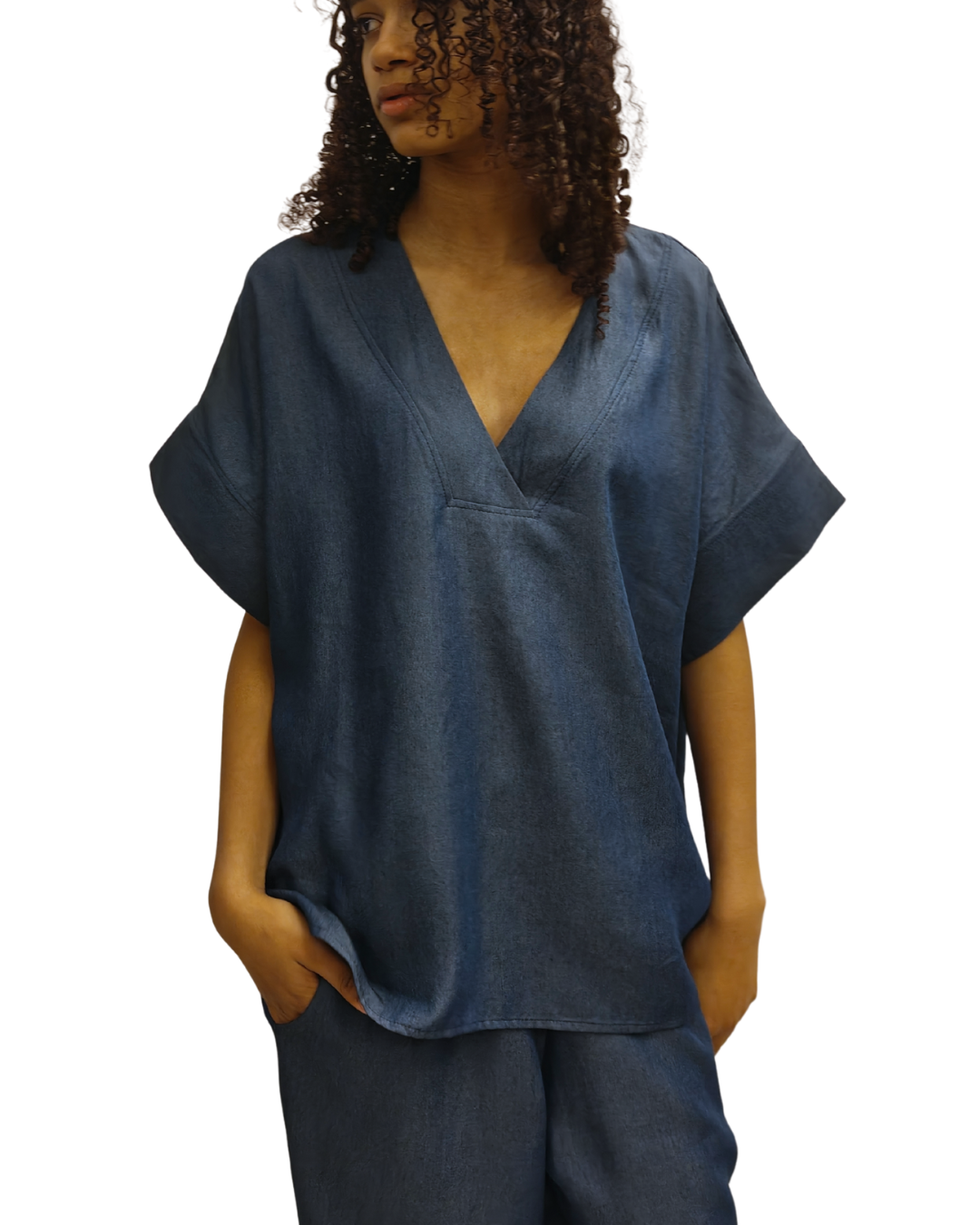 De Domi Top is een verfijnd ontwerp met focus op een elegante diepe V-hals en een ontspannen oversized silhouet. De luchtige lyocell geeft het stuk een natuurlijke beweging en een zomers gevoel, terwijl de snit zorgt voor een sterke, tijdloze uitstraling. Licht en ademend voor warme dagen, maar ook perfect om te layeren met een longsleeve op frissere momenten. Een veelzijdig ontwerp waarin comfort, duurzaamheid en karakter samenkomen — typisch JNSQ. Materiaal: Lyocell